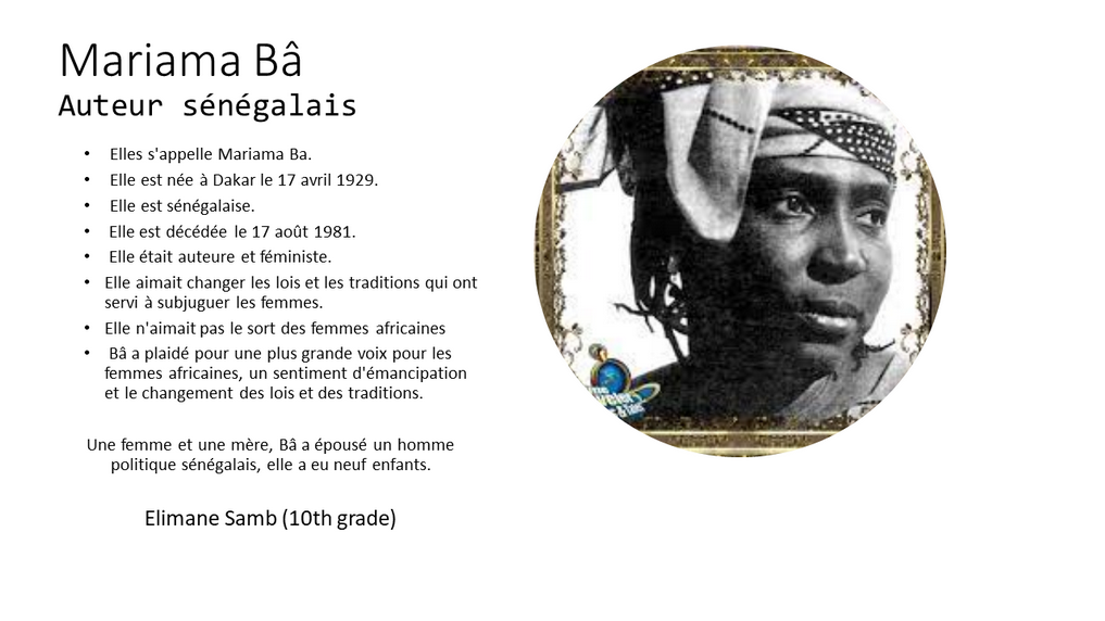 March, and CHEC French language students created a slide on a francophone woman